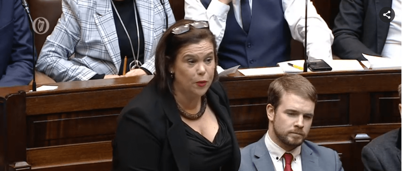 Next up is Sinn Fein’s Mary Lou MacDonald who brings up Saint Vincent de Paul’s recent report that has found poverty levels for lone parents has doubled in the past five years. MacDonald reiterates that the majority of these are working parents who “wake up at the crack of dawn”. Varadkar’s brows furrow and his frown deepens at the jab on his “people who get up early in the morning” campaign statement which attracted controversy at the time.